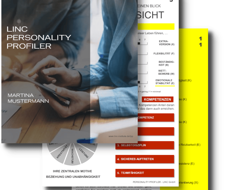 Neben der Basisversion des LINC PERSONALITY PRPOFILERS gibt es den LPP TEAM CHECK, der die Verteilung von Persönlichkeitseigenschaften in Teams transparent macht. Zudem gibt es den LPP PARTNER CHECK, der eine übersichtliche Darstellung der Ergebnisse von zwei Personen als Partner- oder Business-Variante auf einen Blick gibt. Darüber hinaus gibt es die LPP FREMDEINSCHÄTZUNG, die einen systematischen Abgleich zwischen Selbst- und Fremdbild in Form eines 360-Grad-Feedbacks gibt. Und zu aller Letzt gibt es den LPP CANDIDATE CHECK, der für die Personalauswahl konzipiert wurde und der mit einem Abgleich von Soll- und Ist-Profilen arbeitet.