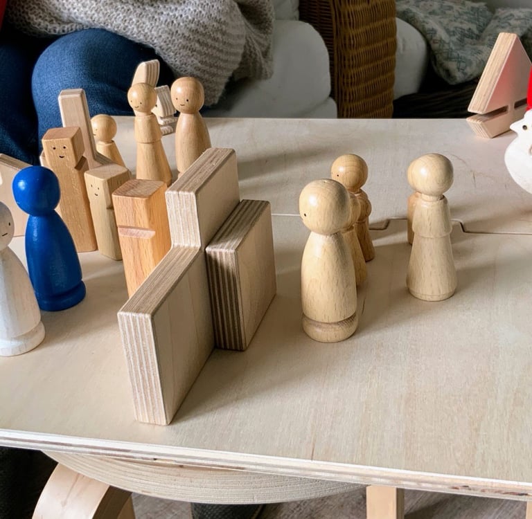 Während bei einer Aufstellung in der Gruppe der Aufstellungsleiter, der Klient und die Stellvertreter (eben Menschen aus der Gruppe) im Raum an einem systemischen Bild arbeiten, sind bei der Aufstellung mit dem Systembrett nur zwei Menschen beteiligt - Sie als KlientIn und ich als Ihre Beraterin. Ihr System wird vom so genannten Systembrett dargestellt und die systemischen Repräsentanten werden durch Holzfiguren symbolisiert.